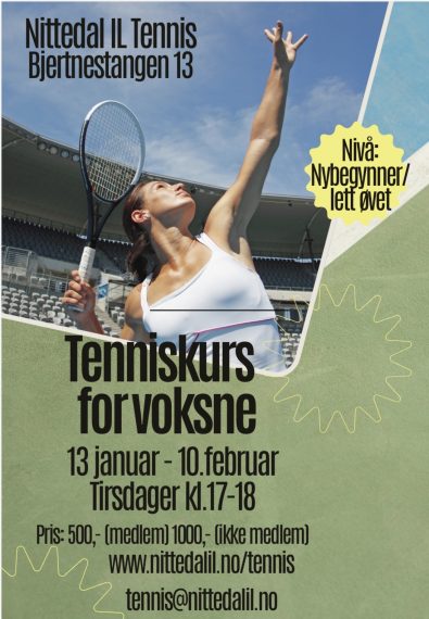 Påmelding til tenniskurs for voksne tirsdag og onsdag fra 13/14. januar