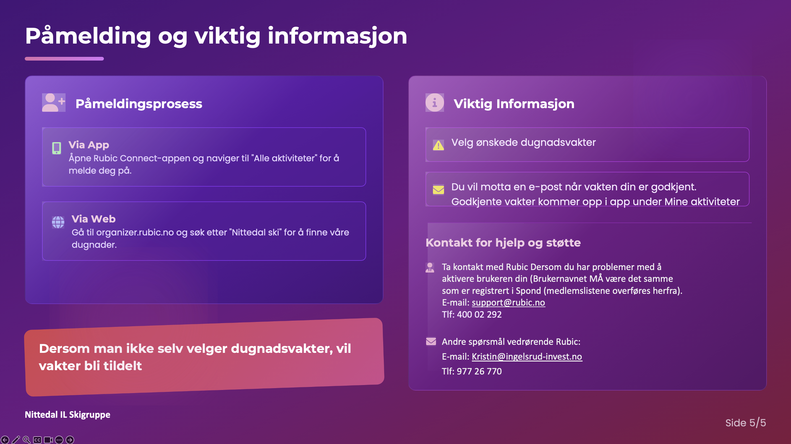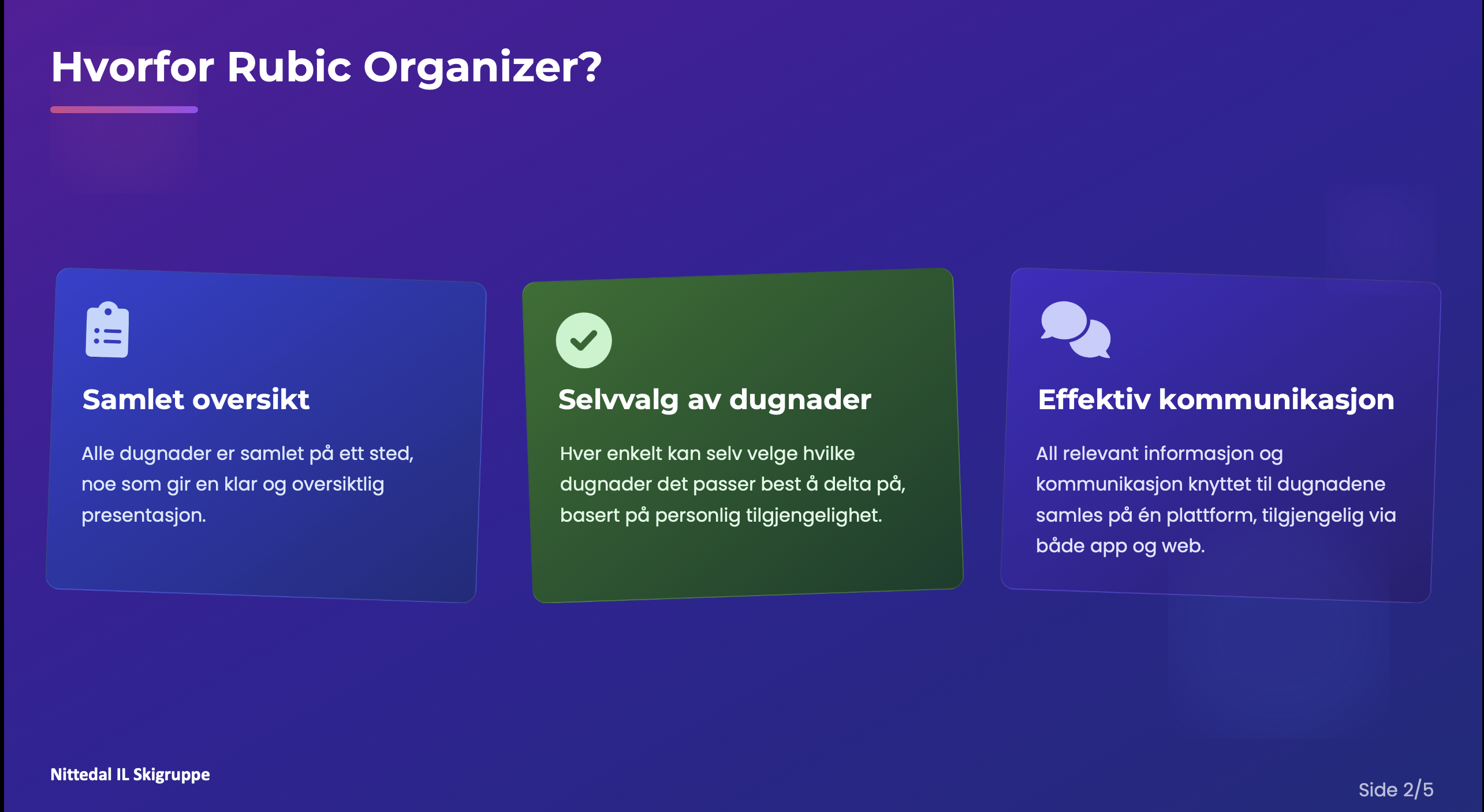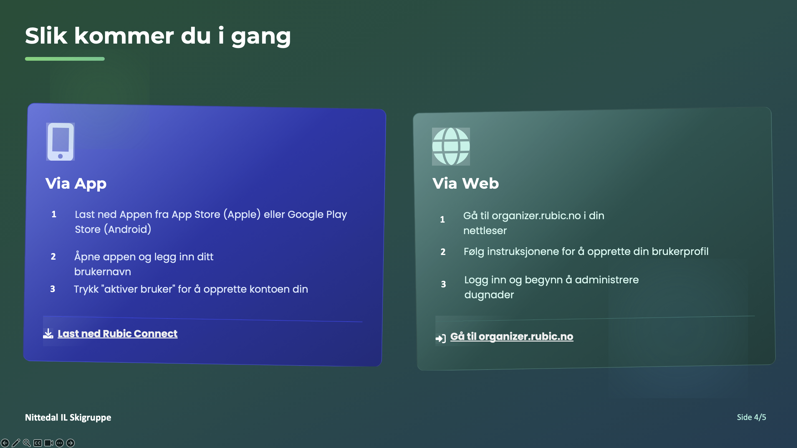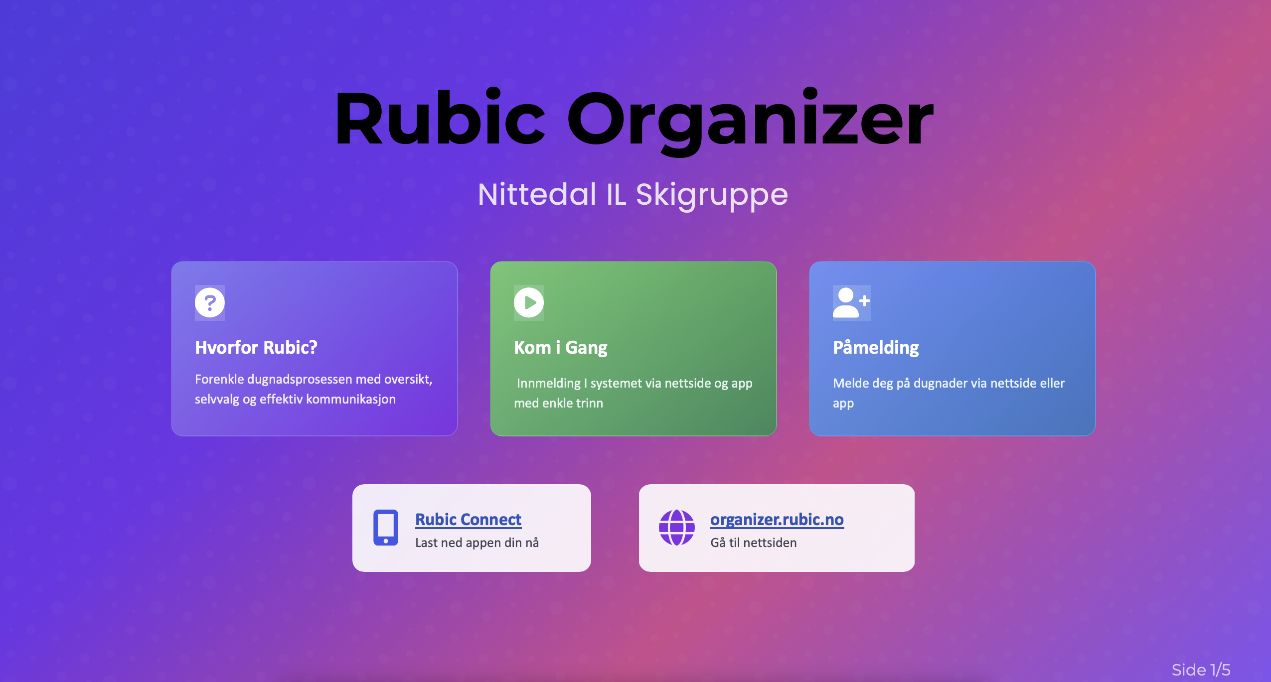 Nittedal Ski har tatt i bruk Rubic Organizer for organisering av dugnader. Linker:
