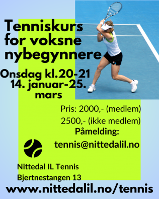 Påmelding til tenniskurs for voksne tirsdag og onsdag fra 13/14. januar