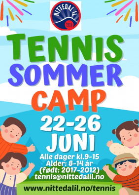 Tennisgruppa arrangerer sommercamp for barn mellom 8-14 år i uke 26 (22.-26. juni)
